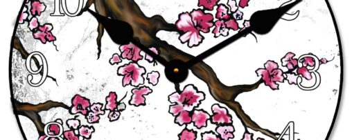 The artwork on this clock was inspired by a piece by Van Gogh called Cherry Blossoms. It was painted by an artist named Nicole Alldredge. I love the contrast of the colors with the white background. It is beautiful! It comes in multiple sizes: (10″, 12″, 15″, 18″, 24″, 30″, 36″, 48″). Our clocks are PRINTED on a SOLID piece (not multiple pieces) of 1/2 “ MDF wood. The ink is engineered to retain its bright, crisp colors for a long time. If you are having problems with your mechanism, you don’t have to send the entire clock back. We replace the mechanism not the entire clock. After 1 year we will only charge shipping and handling for the replacement.