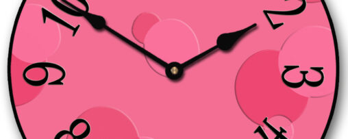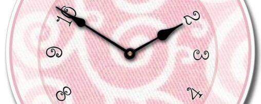 A really cute pink clock that looks great as a bedroom clock or living room clock. This wall clock has a light pink detailing on a white surface. You can have this customized to include a saying or any other type of text. Many sizes are available.