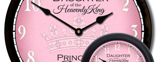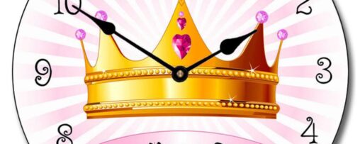 This is a really cute pink crown clock that would be a great fit in your child’s princess themed room. We can customize the text on the face to be your kid’s name instead of the default text–just put in a request. This girl’s bedroom clock is available in many sizes, and frames can be added too.