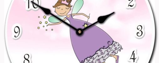 This cute, charming purple princess clock would be great for your child’s princess themed room! We can customize it to include your kid’s name if you want–just put it in your notes. We have this design in pink, as well. This wall clock is available in many sizes.