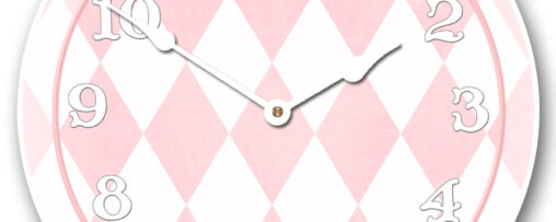 This pink clock is another version of our many plaid clocks in the shop. It’s simple and cute, and would be great in your kid’s room or your own. We can customize this wall clock with your own text or logo if you want. It’s available in different sizes, as well.