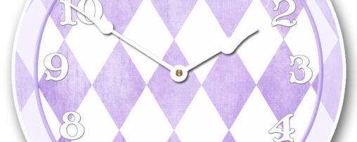 The Harlequin Violet Clock is made with a light, diamond checkered face. Its simple design makes it a great fit to any room in your home. You can also customize it to your liking by asking us to put in YOUR words on the clock face.