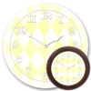 A purple clock with a checkered design and black numbers on the face. It’s a great bedroom clock for you or your child. We can even customize it with your text on the face. This wall clock is available in different sizes.